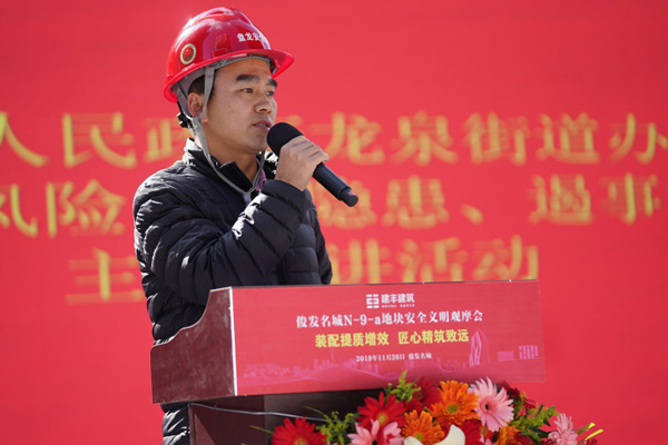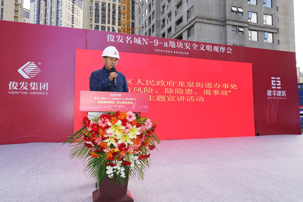隨后,俊發(fā)寶云房地產(chǎn)開發(fā)有限公司俊發(fā)城項(xiàng)目經(jīng)理?xiàng)钏歼h(yuǎn)先生針對(duì)本次觀摩會(huì)發(fā)表講話,云南建豐建筑工程有限公司俊發(fā)名城N-9-a地塊項(xiàng)目經(jīng)理黃璽詳細(xì)解讀了本項(xiàng)目的安全文明管控措施。講話結(jié)束后,領(lǐng)導(dǎo)及到場(chǎng)參觀的外單位來(lái)賓參觀了工地,項(xiàng)目部工作人員隨行并針對(duì)項(xiàng)目的先進(jìn)工藝技術(shù)進(jìn)行講解。活動(dòng)最后,盤龍區(qū)應(yīng)急管理局黨組書記、局長(zhǎng)楊勇同志對(duì)本次活動(dòng)進(jìn)行點(diǎn)評(píng)。