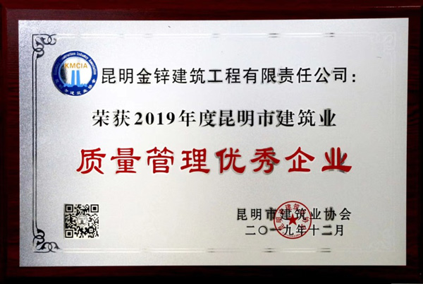 金鋅公司榮獲昆明市建筑業“質量管理優秀企業”