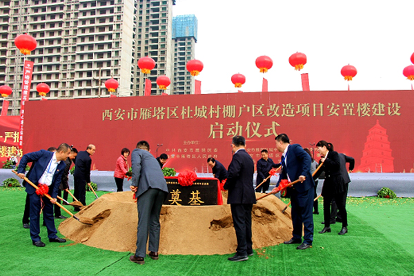 11月4日上午10點,鑼鼓喧天,禮炮連唱,醒獅歡舞,西安雁塔區杜城村棚戶區改造項目安置樓建設正式啟動!