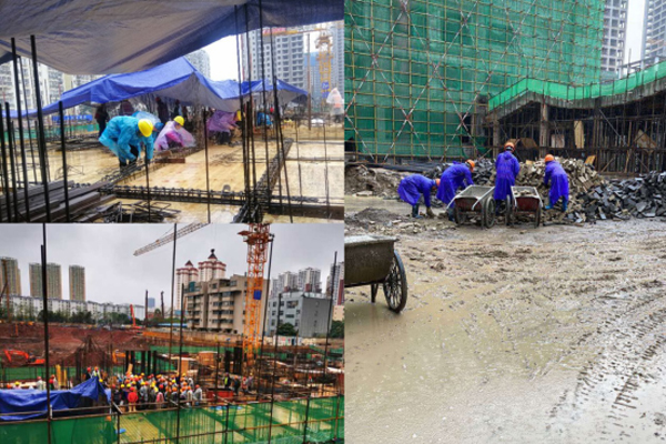 時值2020年7月,昆明的天空有時陰雨連綿、有時暴雨突襲,惡劣的天氣給施工現場帶來了諸多不便,但為了保證工程進度,俊發建設集團諸多項目依舊在緊鑼密鼓地施工中。項目管理人員和現場施工人員在陰冷潮濕的環境下不辭辛勞的工作,鮮亮的安全帽如同溫暖的火苗在雨水中閃耀著光芒,他們是值得我們尊敬的人,是建筑工地上最可愛的人。