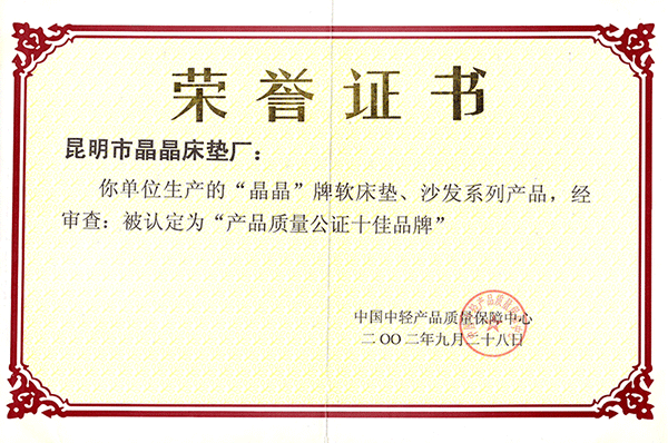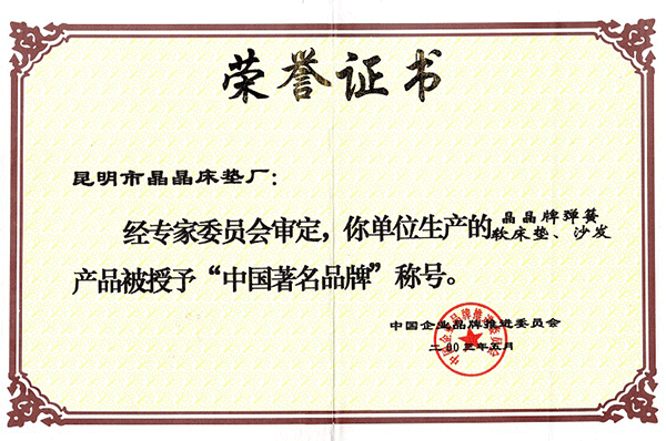 【晶晶床墊】1999云南省名牌產(chǎn)...