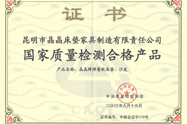【晶晶床墊】2003國(guó)家質(zhì)量檢測(cè)...