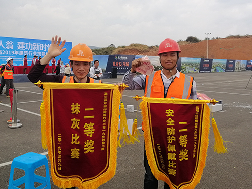 為營造建筑行業勞動者學技術、練本領、比技能的濃厚氛圍,培育精益求精的工匠精神,嵩明縣住建局于2019年5月9日舉辦2019年建筑行業技能比賽,云南建豐建筑工程有限公司空港俊發城項目部派人員積極參加技能比賽,并獲得抹灰比賽二等獎、安全防護佩戴比賽二等獎。